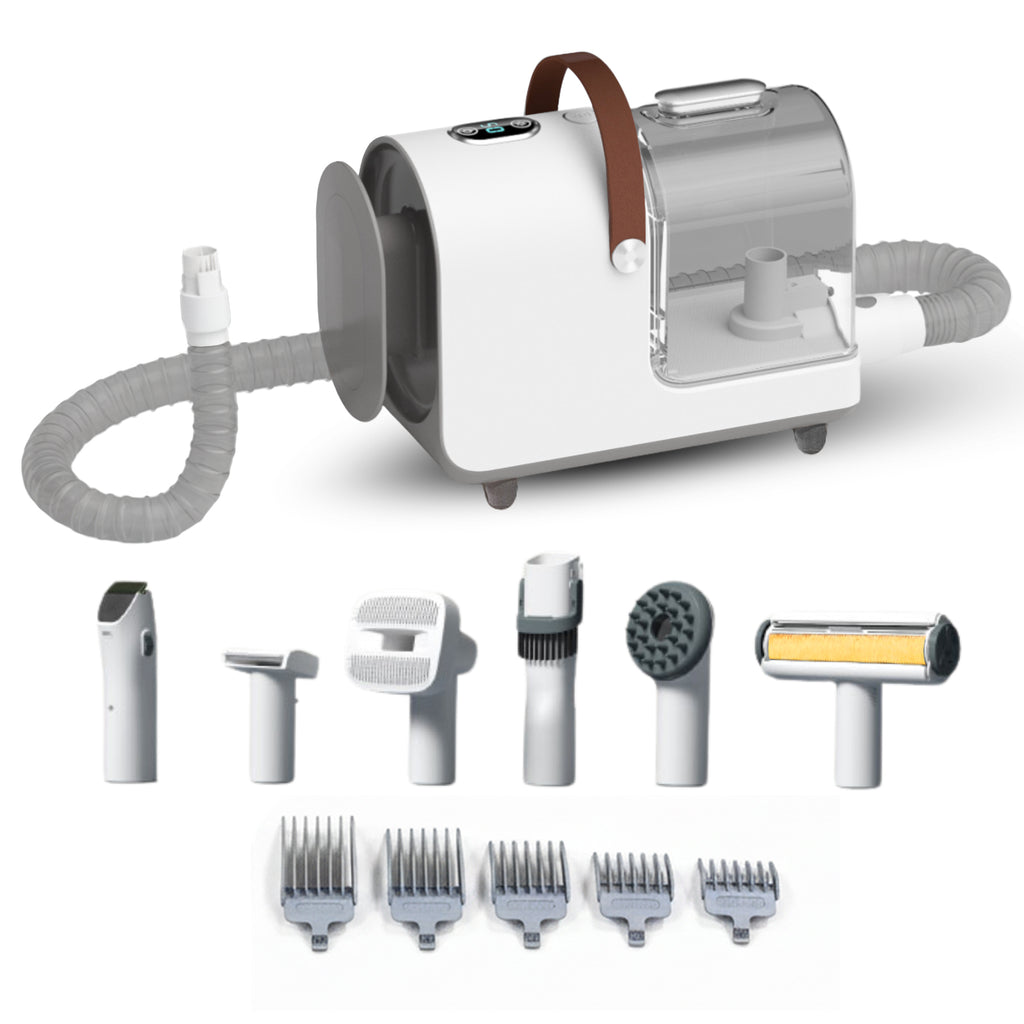 Dit innovatieve apparaat combineert hondentondeuse, kattentondeuse, hondenborstel stofzuiger en stofzuiger dierenharen in één systeem. Zo trim je, borstel je en zuig je losse haren direct op voor een schoon huis en een goedverzorgde vacht.