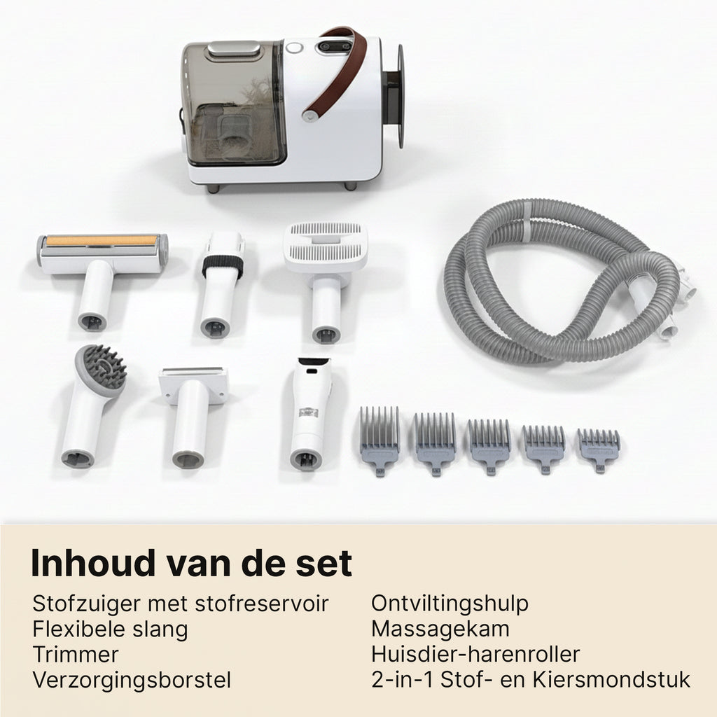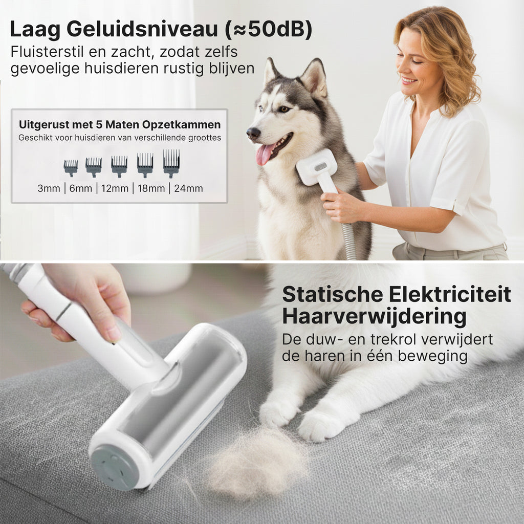 Bespaar tijd, houd je huis haarvrij en geef je viervoeter een verzorgde, glanzende vacht met één slim, stil en professioneel apparaat.