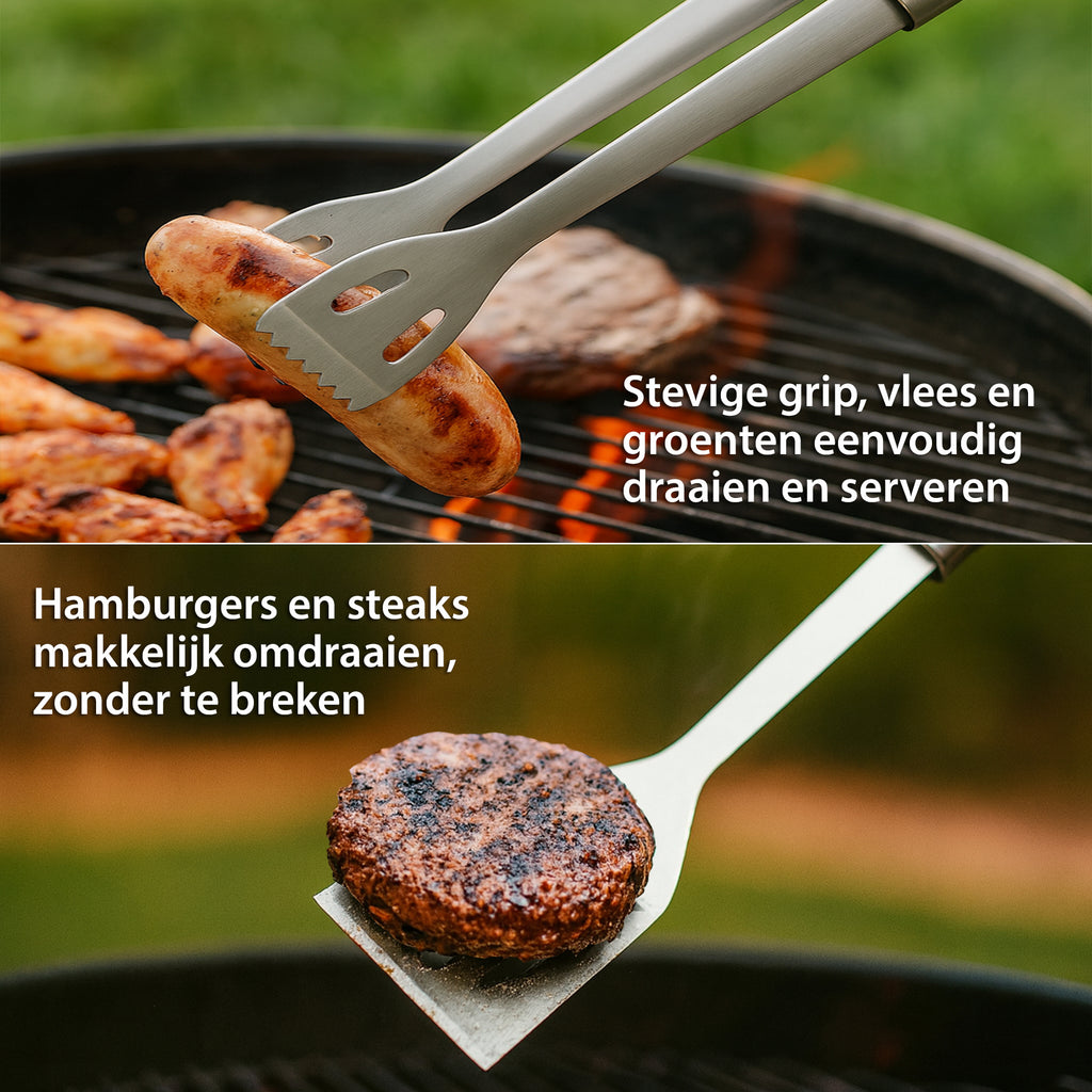 Alle tools zijn gemaakt van premium RVS. Dat betekent: hittebestendig, krasvrij en langdurig gebruik zonder roest. Zelfs bij intensief gebruik blijven de accessoires in topconditie – perfect voor wie houdt van kwaliteit en stijlvolle barbecue accessoires.