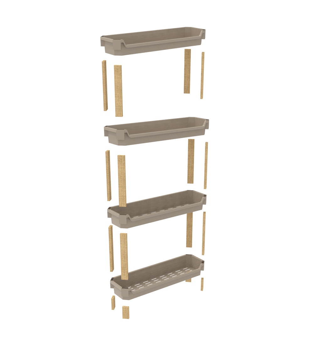 Het unieke modulaire systeem maakt het rek eenvoudig te monteren én uitbreidbaar. De stevige houten poten klik je moeiteloos vast aan de kunststof bakken, zonder gereedschap. Je kunt het bovendien uitbreiden met extra lagen of combineren met andere FixWood-modules om een persoonlijke opbergoplossing te creëren.
