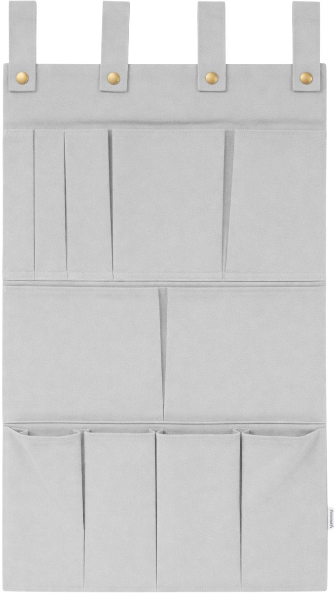 Dankzij de vier stevige lussen met drukknopen hang je de organizer gemakkelijk op aan een stang, haak, deur of bedrand – zonder te boren! De lussen zijn breed genoeg voor de meeste standaard deuren en stangen.