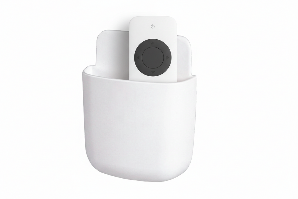 Deze set afstandsbediening hebben een wit, strak retro uiterlijk. De houders zijn zo ontworpen dat er ruimte is voor een afstandsbediening, met een kleine speling erin. Door de witte kleur vallen de houders op een witte muur amper op. Door een zwarte afstandsbediening valt het daarop direct op als de beruchte vraag valt: “Waar is de afstandsbediening?”