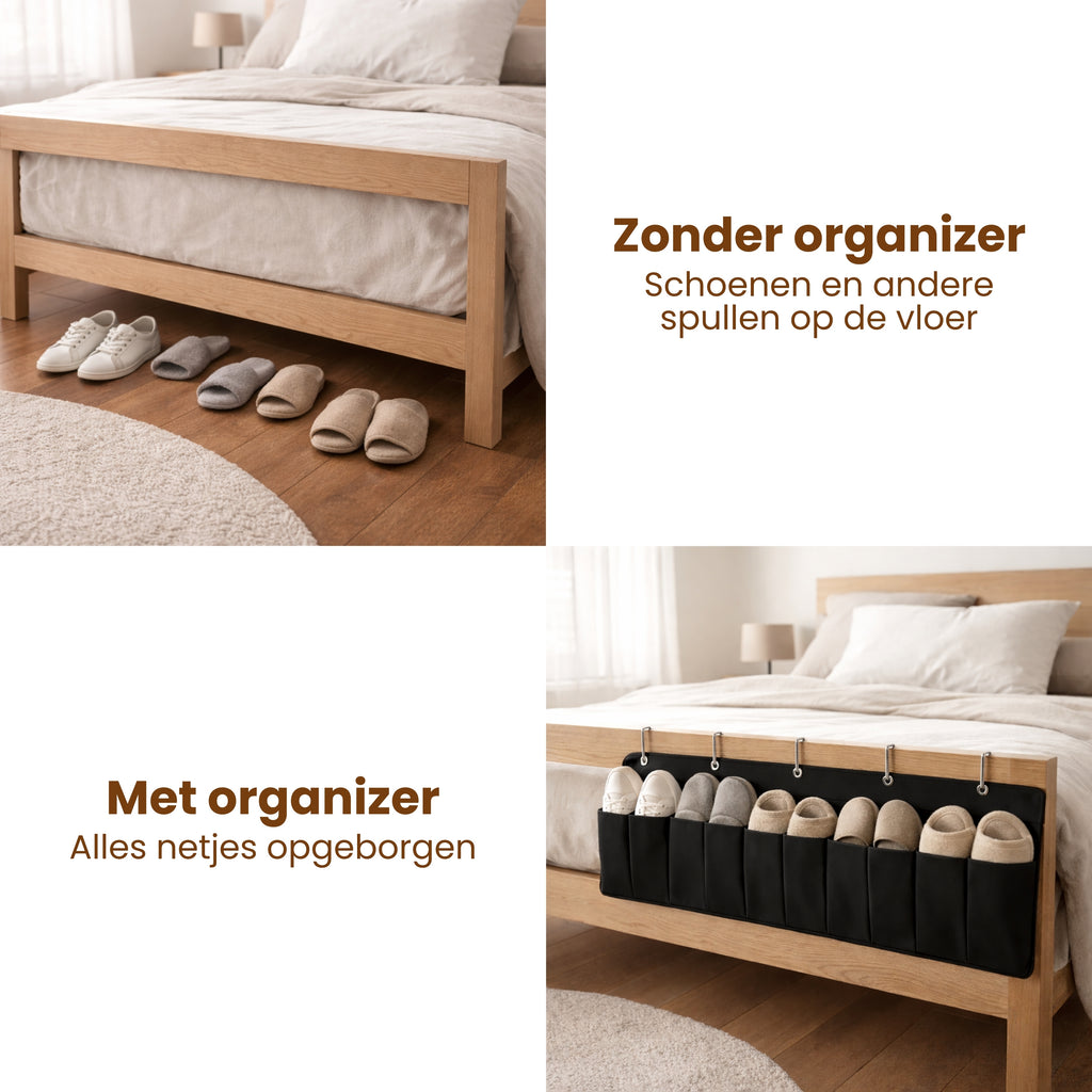 Wil je meer overzicht, minder rommel en alles wat je nodig hebt direct binnen handbereik? Dan is deze bed organizer een slimme en ruimtebesparende toevoeging aan jouw slaapkamer. Ontdek hoe eenvoudig het is om structuur en rust te creëren, zonder gedoe met montage of extra meubels.