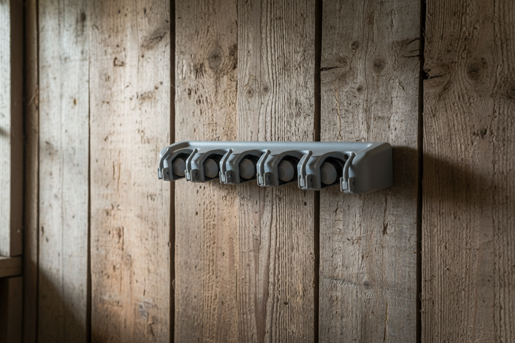- Geschikt voor 5 stuks tuingereedschap, bezems of dweilen.