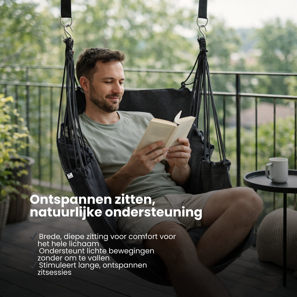 Veel mensen willen een fijne relaxplek in huis, op het balkon of in de tuin, maar hebben te maken met beperkte ruimte of een interieur dat snel vol oogt. Traditionele stoelen nemen veel plek in en bieden vaak niet het geborgen, zwevende gevoel waar je lichaam echt van tot rust komt. Bovendien is het vaak gedoe om een hangstoel te installeren of ontbreekt de juiste ophangset.