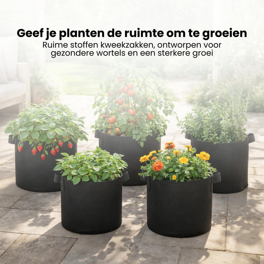 Een stoffen grow bag zorgt ervoor dat wortels zich niet blijven ronddraaien zoals in harde potten. In plaats daarvan vertakken de wortels zich op natuurlijke wijze, wat leidt tot een sterker wortelstelsel en een gezondere plant. Bovendien zorgt het ademende materiaal voor optimale luchtcirculatie en waterafvoer, waardoor de kans op wortelrot aanzienlijk kleiner wordt.