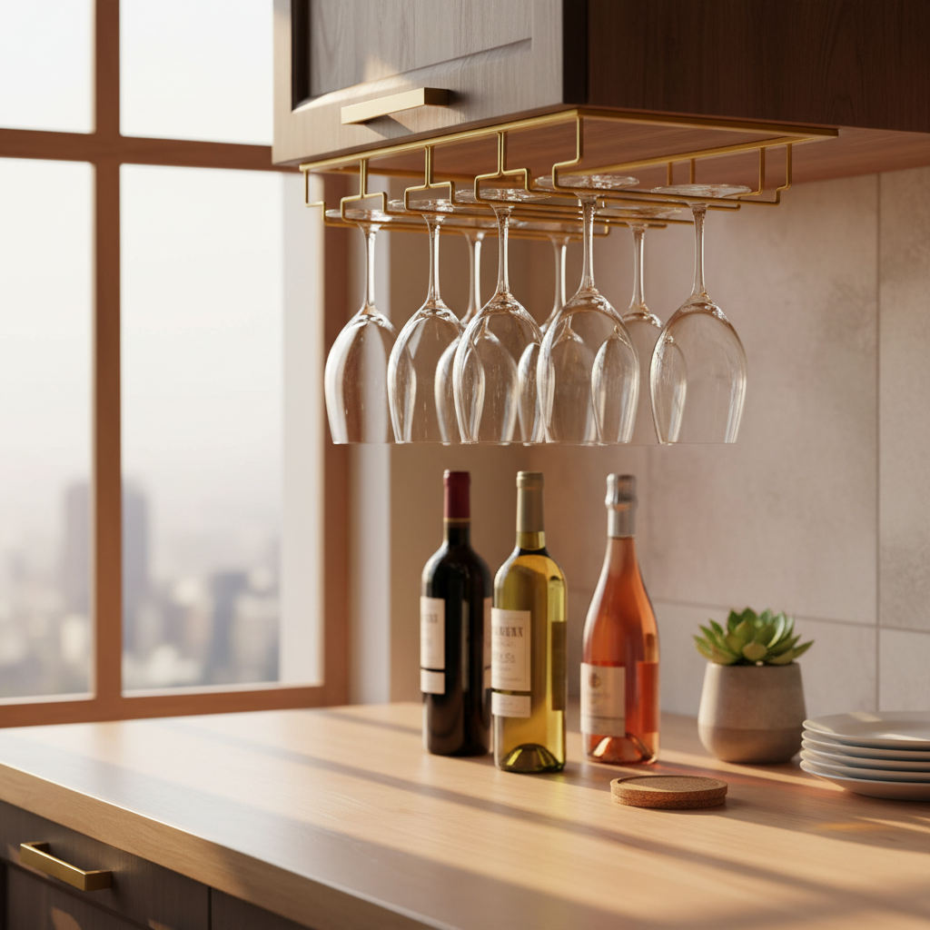 Deze metalen wijnglazenhouder is tevens ideaal om je ruimtegebrek in de kast mee op te lossen. Bevestig de wijnglazenhouder onder het keukenkastje, in de kast of op een andere geschikte plaats en u kunt er 9wijnglazen in kwijt.