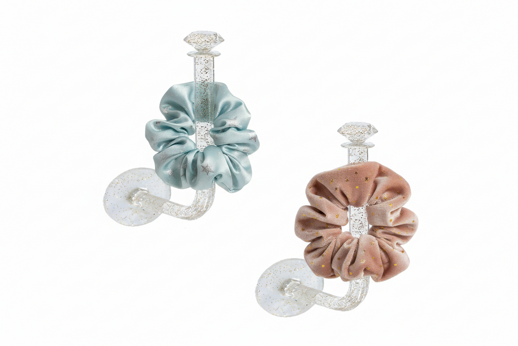 Je krijgt een complete set met twee houders geleverd. Je hebt dus extra veel opbergruimte voor je scrunchies.