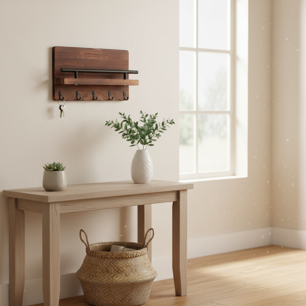 Door het klassieke design is het mogelijk om het sleutelrekje in elke ruimte te monteren. Dankzij de rand is het ook mogelijk om er post op te leggen zonder dat dit eraf kan vallen.