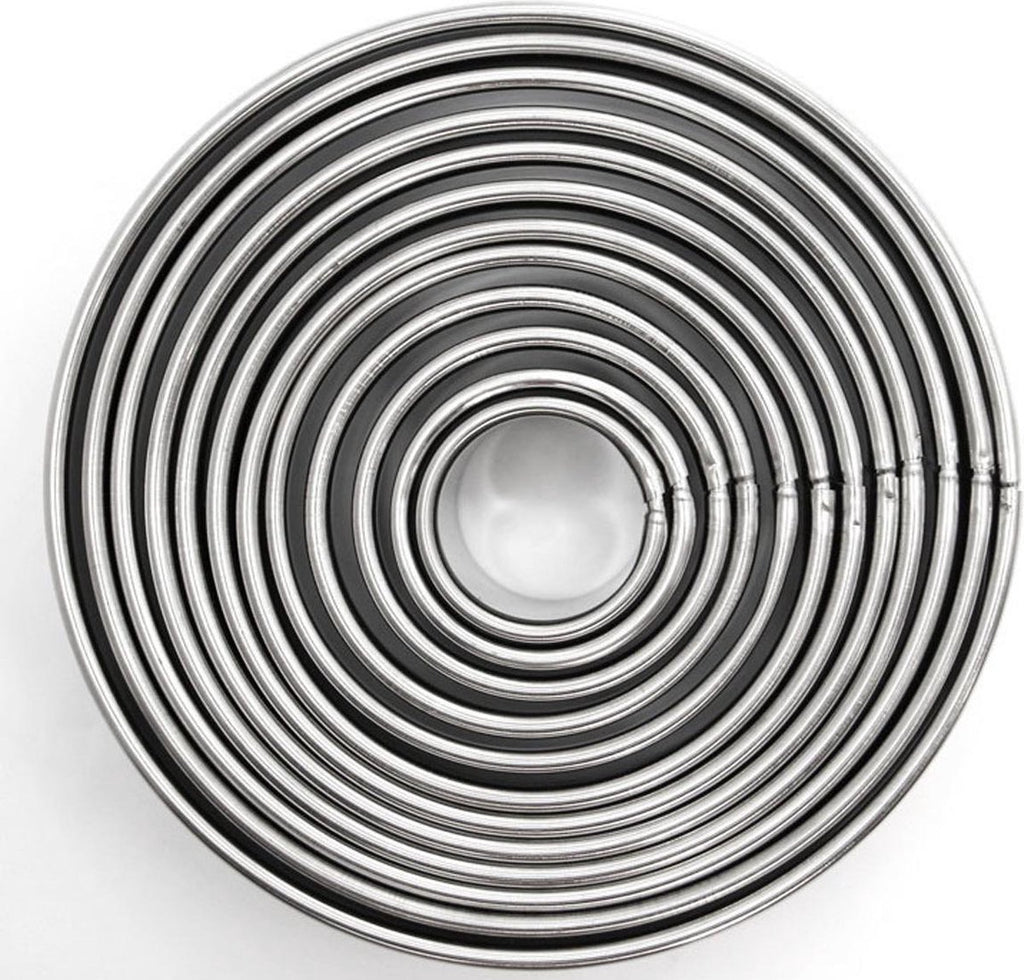 Deze set uitsteekringen hebben een fris en strak uiterlijk. De ringen zijn zo ontworpen dat er ruimte is voor een gerechtje dat ook nog een beetje de hoogte in kan. Zo bepaal je zelf de dikte en de inhoud! De ringen zijn zo ontworpen dat ze de tegen hitte van de oven kunnen. De afmetingen variëren van 3 tot 12 cm.